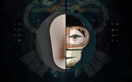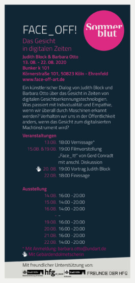 Jede Ausstellung braucht ein Symbolbild, das als Gesicht der Veranstaltung dient. Diese Ausstellung hat erstens Gesichter als Thema behandelt und zweitens die Arbeiten von zwei vollkommen unterschiedlichen Künstlerinnen gezeigt. Deshalb war es mir ein Anliegen, ein Gesicht zu zeigen, das sich aus zwei Masken der beiden Künstlerinnen zusammensetzt. Die linke Hälfte des Bildes zeigt die mittlere Maske meiner Installation, die rechte Hälfte eine Collage-Skulptur der Künstlerin Barbara Otto, die die Demonstrationen in Hong Kong im Jahr 2019 thematisiert. Mehr über Barbara Ottos Arbeiten unter: undart.de