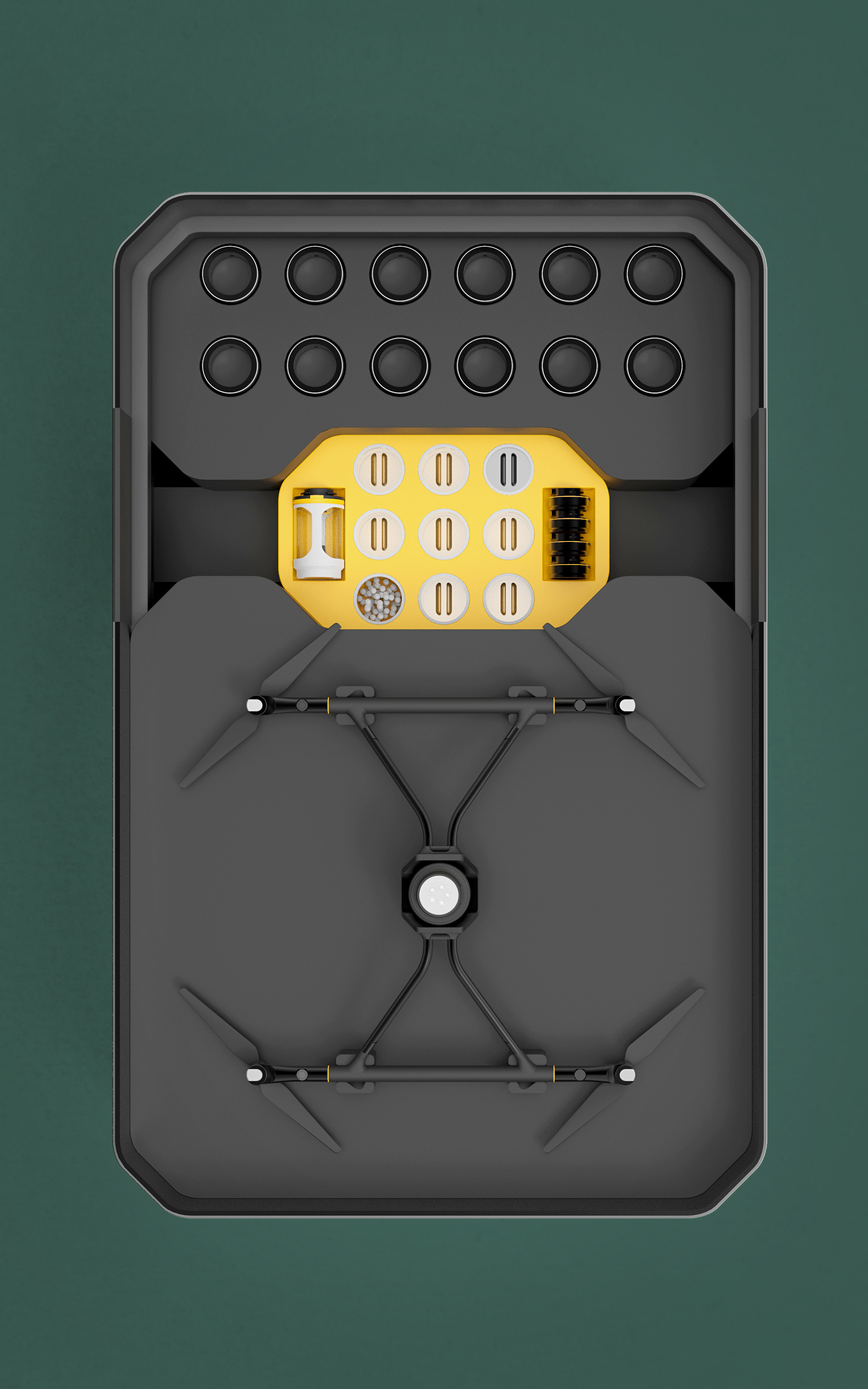 KLEA ist das Konzept für einen Drohnenservice, der sich auf Schädlingsprävention für kleine und mittelgroße Landwirtschaftsbetriebe spezialisiert hat. Das Werkzeug dafür ist ein Drohnenset, das in von einem Servicemitarbeiter zu den Betrieben gefahren wird. Die Drohne kann mit zwei Aufsatztypen bestückt werden: